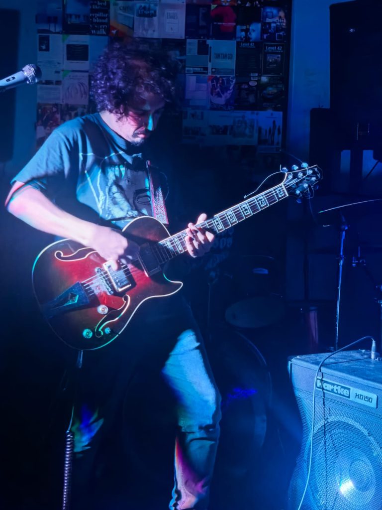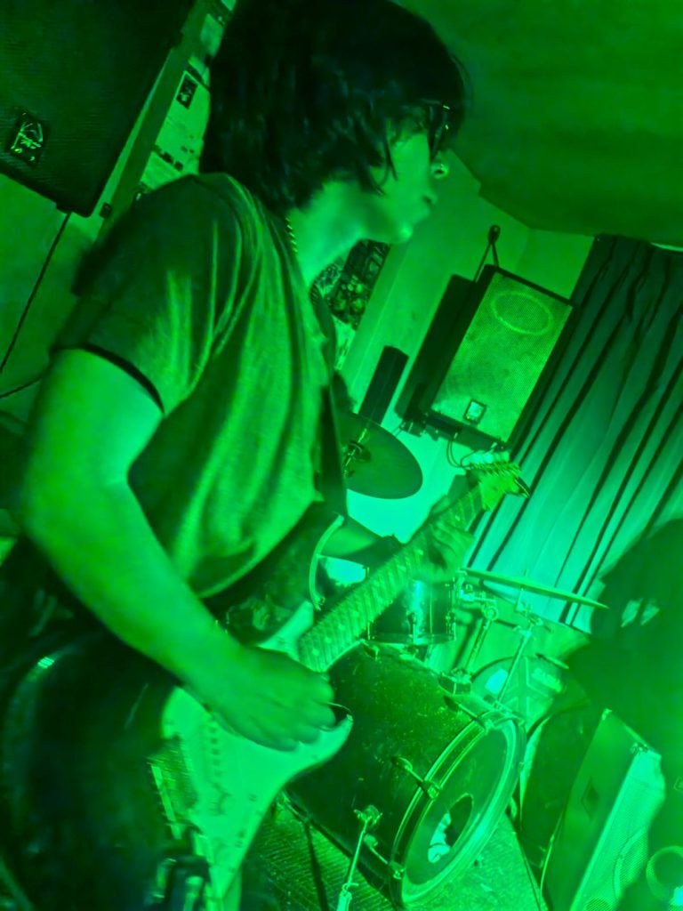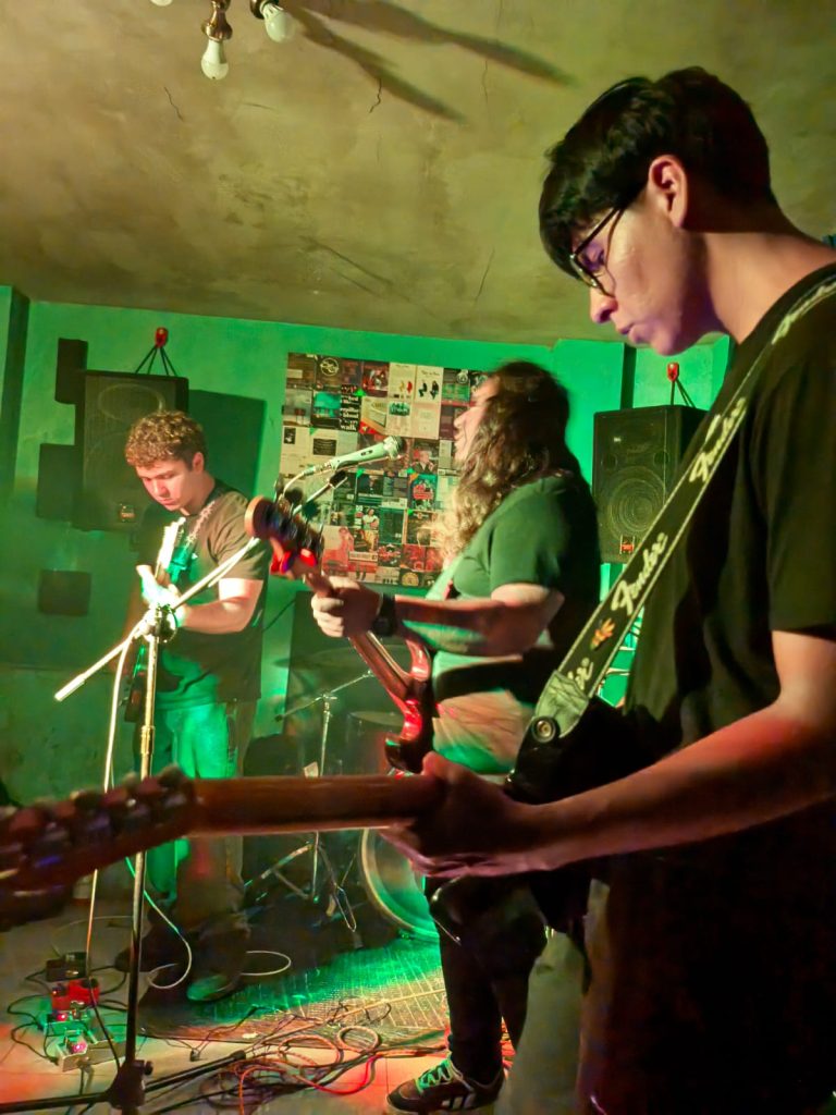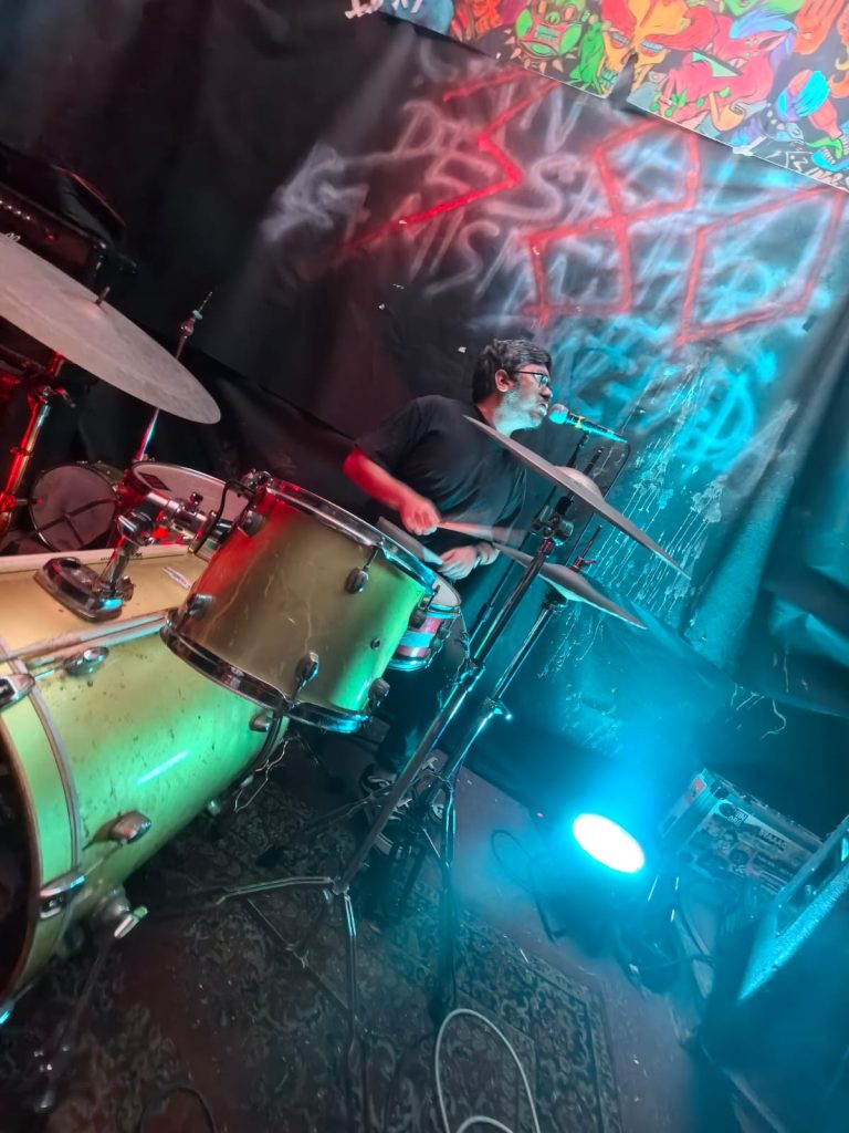 Finalmente llegó el turno de Brendan Jordan, quienes ofrecieron un show marcado por atmósferas profundas, reverb, delay y estructuras que se mueven entre el post punk y el dream punk. El vocalista y baterista Lemus asumió, como siempre, la doble misión de sostener el pulso y conducir la voz principal—aunque difícil, loejecuta con naturalidad. Los coros estuvieron a cargo del querido Sergio “Kashorro”, figura reconocida en la escena ariqueña, mientras que Marcos y Bryan completaron el viaje sonoro desde las guitarras.